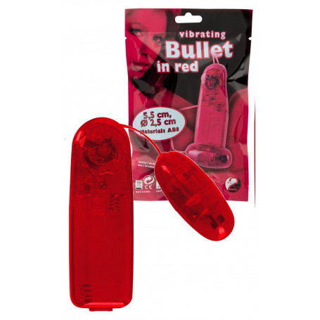 Ovulo con vibrazione rosso trasparente con controller a distanza con filo. Potrete regolare la vibrazione con l'apposita rotella posta sul telecomando via filo. Ovulo vibrante lunghezza 5.5 cm per 2,5 cm di diamtero. Lunghezza filo cm 64.