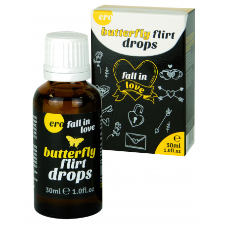 Ero Butterfly Flirt Drops è un potente agente che aumenta il desiderio sessuale e il desiderio di sesso. La composizione appositamente selezionata del prodotto è stata arricchita con una dose massima di L-Arginina, che aumenta la sensibilità al tatto, inoltre provoca un aumento dell'intensità e della lunghezza dell'orgasmo. È la L-arginina contenuta nella preparazione che influenza anche la fornitura gratuita di sangue ai genitali, che aumenta la sensibilità agli stimoli sessuali.