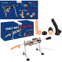 Macchina del sesso bifronte ad alta potenza di The Banger che include 2 dildo e 1 masturbatore per un piacere sessuale vario e infinito da soli o in coppia. La macchina del sesso a motore si configura rapidamente e può essere regolata individualmente in altezza e angolazione, in modo da rendere possibile non solo un perfetto divertimento in solitaria, ma anche un uso bifronte e simultaneo di due partner - naturalmente a mani libere.
